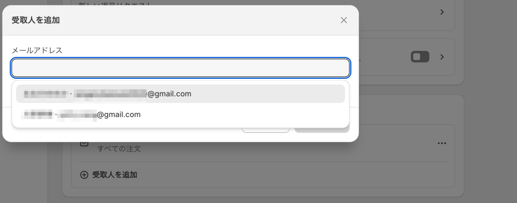 受取人を追加をクリックするとポップアップが出てきて受信できるアカウントを選択することができます